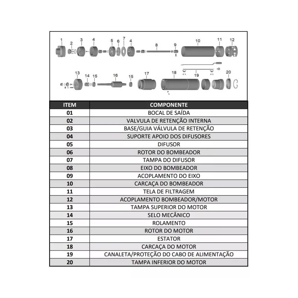 1 – Bomba Submersa Caneta P/poços 3po 1,0cv 220v Claw W3sdm2/18