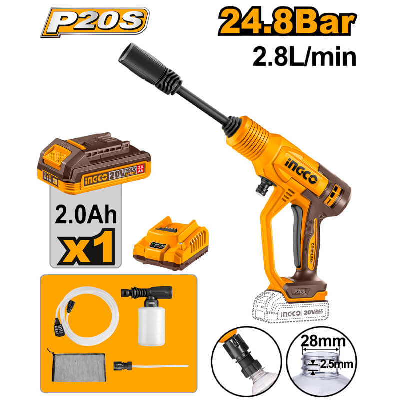 Desenvolva seus projetos de limpeza com potência e portabilidade com a Lavadora a Bateria 20V INGCO CPWLI20362-9! Com pressão máxima de 24,8 bar e fluxo de 2,8 L/min, essa lavadora é ideal para limpeza de superfícies, veículos e equipamentos. Além disso, sua tecnologia de auto-parada e bateria de 2,0 Ah garantem uma operação segura e eficiente.