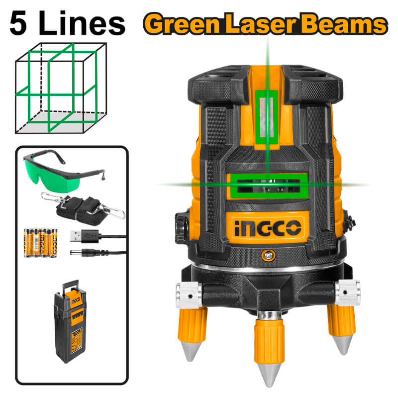 Nível a Laser 5 Linhas Verdes (1 Horizontal E 4 Verticais) Ingco HLL305205
